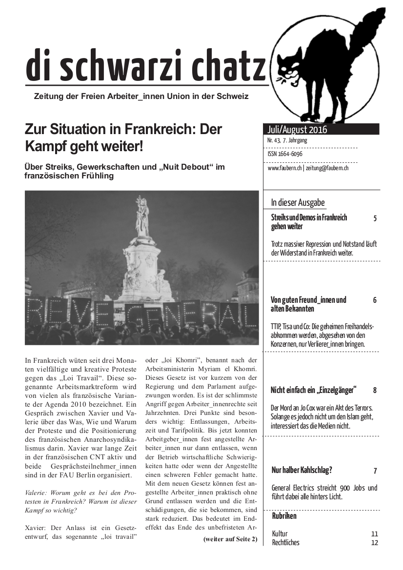 Wir zeigen in Kooperation mit der FAU-Deutschland und der "Gegenbewegung Soliwoche" den Fim "Memoria Viva" im Kino der "Familie Osterhase" in der Bernstrasse 29, in Ostermundigen um 18:00.