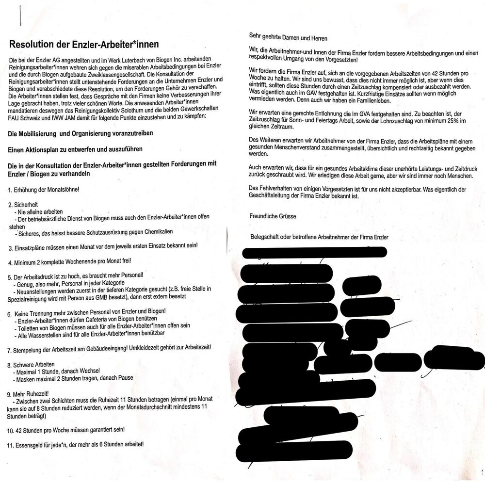 For the Conflict at Biogen's plant at Luterbach we are working closely with our Partners IWW in the cleaners collective. We fight for the respect, security and perspective the workers deserve - and we fight together with the workers, not "in their place".