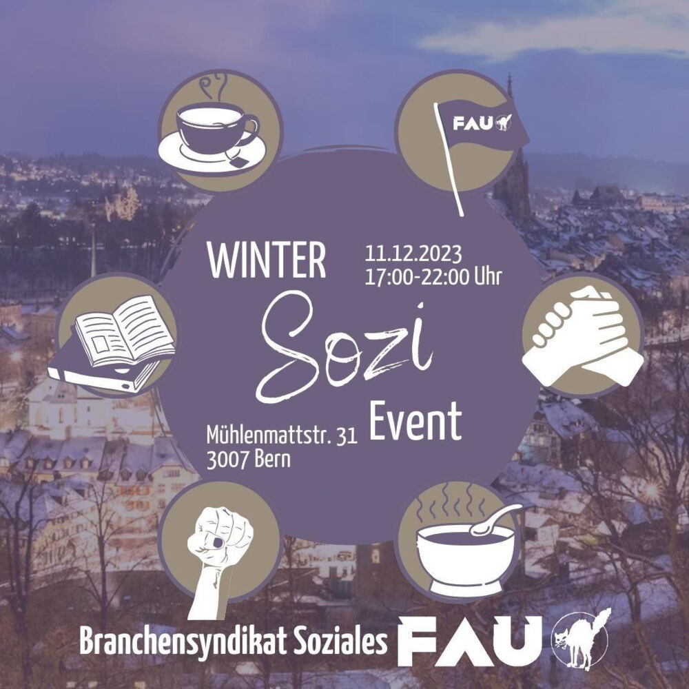 Komm zum Winter Sozi Event des Brachensyndikats Soziales der FAU!