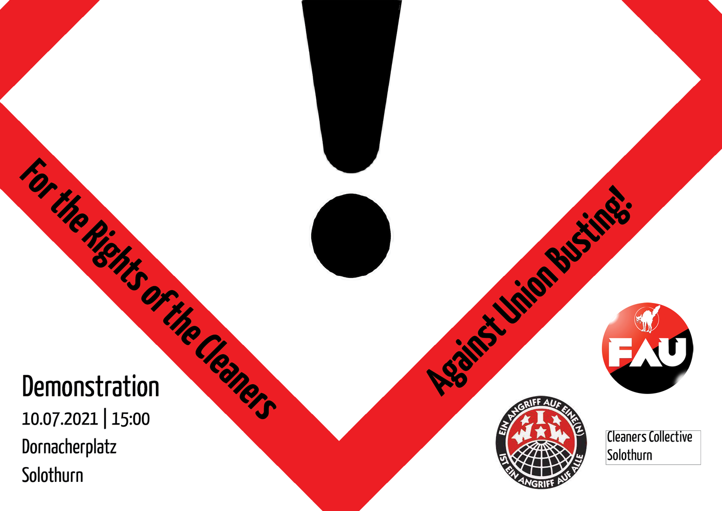 For the Conflict at Biogen's plant at Luterbach we are working closely with our Partners IWW in the cleaners collective. We fight for the respect, security and perspective the workers deserve - and we fight together with the workers, not "in their place".