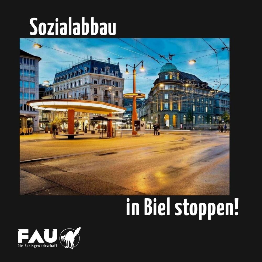 In Biel wird über ein Stadt-Budget diskutiert, welches einen groben Sozialabbau nach sich ziehen würde. Die FAU beteiligt sich an einer Aktion vor dem Stadtparlament und wird Flyer verteilen und mit einem Tee- und Glühwein-Stand vor Ort sein.