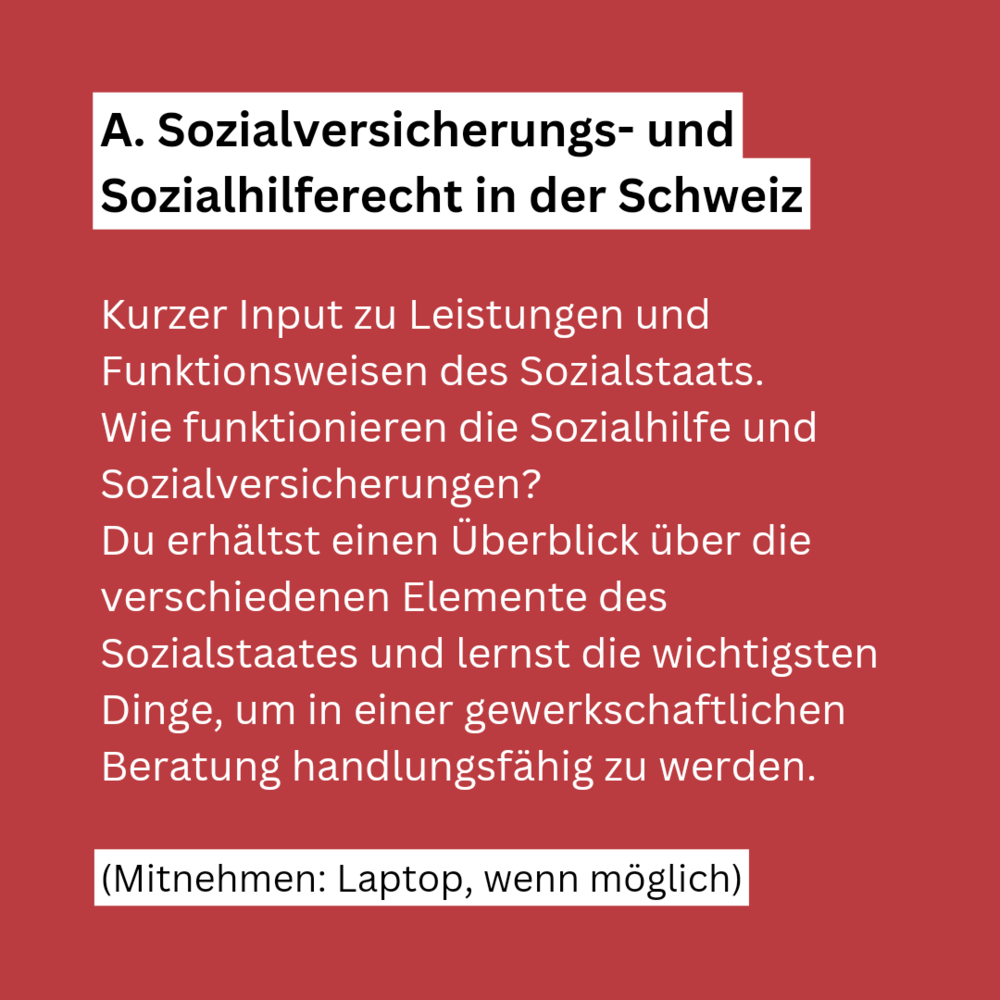 Kurs A: "Grundlagen zu Sozialhilfe und Sozialversicherungen"