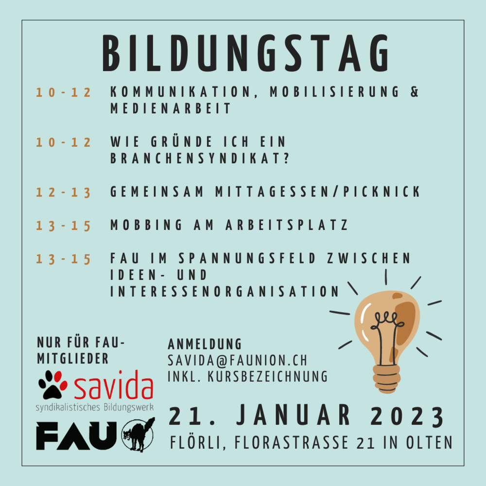 Selbstbildung war schon immer ein Teil der Arbeiter:innenbewegung und -Kultur. Durch unsere Arbeit gewinnen unsere Mitglieder stets an Wissen. Mit Savida wollen wir dieses Wissen weitergeben, unter unseren Mitgliedern und auch allen Menschen.